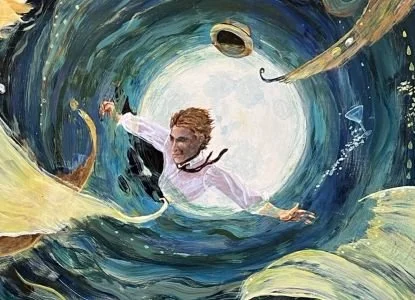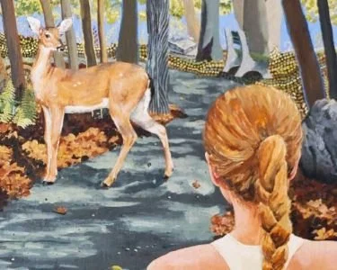 From Jen: “I’m a Maine painter in the small, strange town of Hallowell, surrounded by river, trees and hills. The woods are always near, and so are the animals. Sometimes the smaller ones get in the house, and we have to shoo them back out. Even here in town, the trees are everywhere. Even here in town, the trees are everywhere. The Spirit of Nature is breathing with us, here, every breath we take, we’re breathing Her breath. The only reason we can’t smell it is we’re so used to it, we take it for granted.