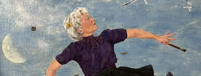 So, my paintings tell about women and how our breath is the Goddess’s breath, how we’re not so different from the foxes, the deer. How our dreams are mermaid dreams, as we breast the waves and plunge beneath the chill green silk of their sides. My paintings are about flying, floating, on the night breeze because the fireflies and moths and owls call us to come to the window, raise our arms and ride the wind. My paintings are about walking into a jungle filled with perfumed flowers and friendly tigers and winged lizards, and knowing it for both a creation of our minds, and more real than anything. I paint joy in the grace and strength of a young body, and I paint the dignity of the wisdom of age.